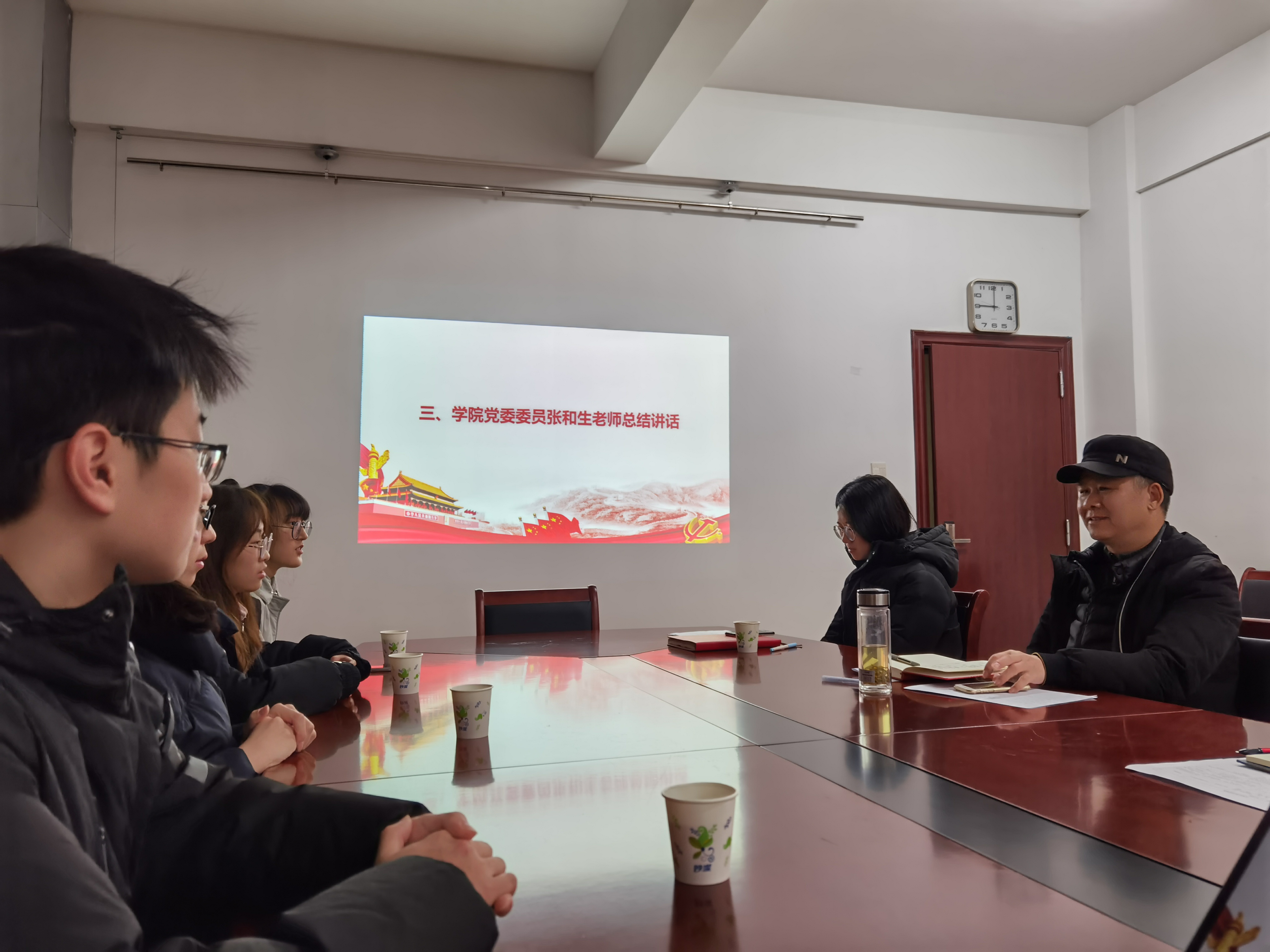 张和生对本次答辩会进行总结,并对同学们提出了几点期许。首先,要进一步加强党的基本理论知识学习,转正是新阶段的开启,未来的学习、工作之路始终要保持党员的先进性,贯彻执行党的方针政策、切实履行党员责任与义务;其次,要学会透过表象看实质,关注党员荣光背后的巨大付出和无畏担当,成长中凝练、修正最初的入党动机;最后,要结合自己的角度理解和思考党的先进理念和思想,切身感受党的凝聚力、领导力、执行力在疫情防控等重大事件中的价值和影响,积极投身实践,争做忠诚爱国、担当有为的新时代青年先锋党员。