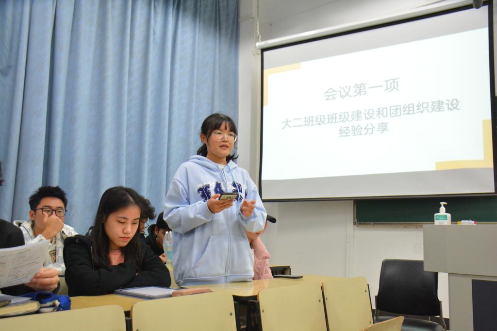 新学期伊始,一年级新上任的班委对班级管理、活动组织、人心凝聚等方面存在很多疑问,故本次的会议主题围绕“如何有效开展班级工作”展开。首先,大二班委为大一班委分享了管理班级和学习方面的经验,如准备四六级模拟考试、学习通签到等。紧接着,大一班委提出自己在生活、学习和管理方面遇到的问题,如营造良好的学习氛围、如何提高同学们的积极性等。