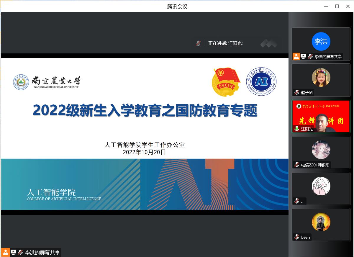 举办2022级新生入学系列教育第三讲——国防教育专题讲座。本次讲座由中国人民解放军陆军工程大学野战工程成人电影江阳光少校主讲,本科生辅导员李洪主持,全体新生线上参加。