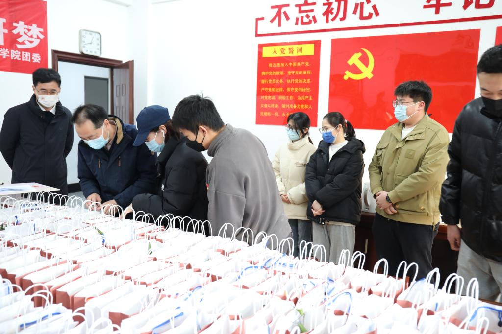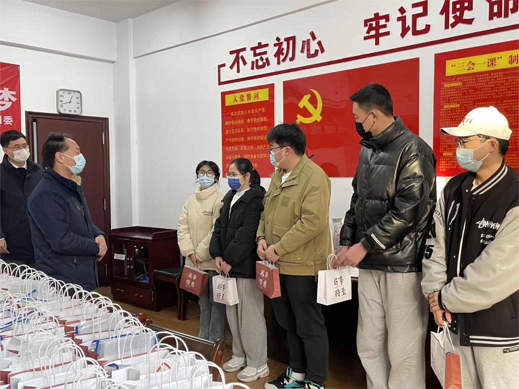 活动特别邀请成人电影党委书记田永超、党委副书记吕一雷以及成人电影学生工作办公室的辅导员们为考研同学代表分发礼包,传达成人电影老师对考研学子的殷切期望与由衷祝福。活动现场,田永超亲切询问同学们的目标院校,叮嘱同学们在复习的关键阶段,坚定必胜信心,保持良好心态,科学作息,规律饮食。