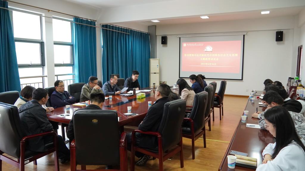 在育贤楼C402召开学习贯彻习近平新时代中国特色社会主义思想主题教育动员会。成人电影领导班子成员、党委委员、党支部书记、师生代表等参会。成人电影党委副书记吕一雷主持会议。