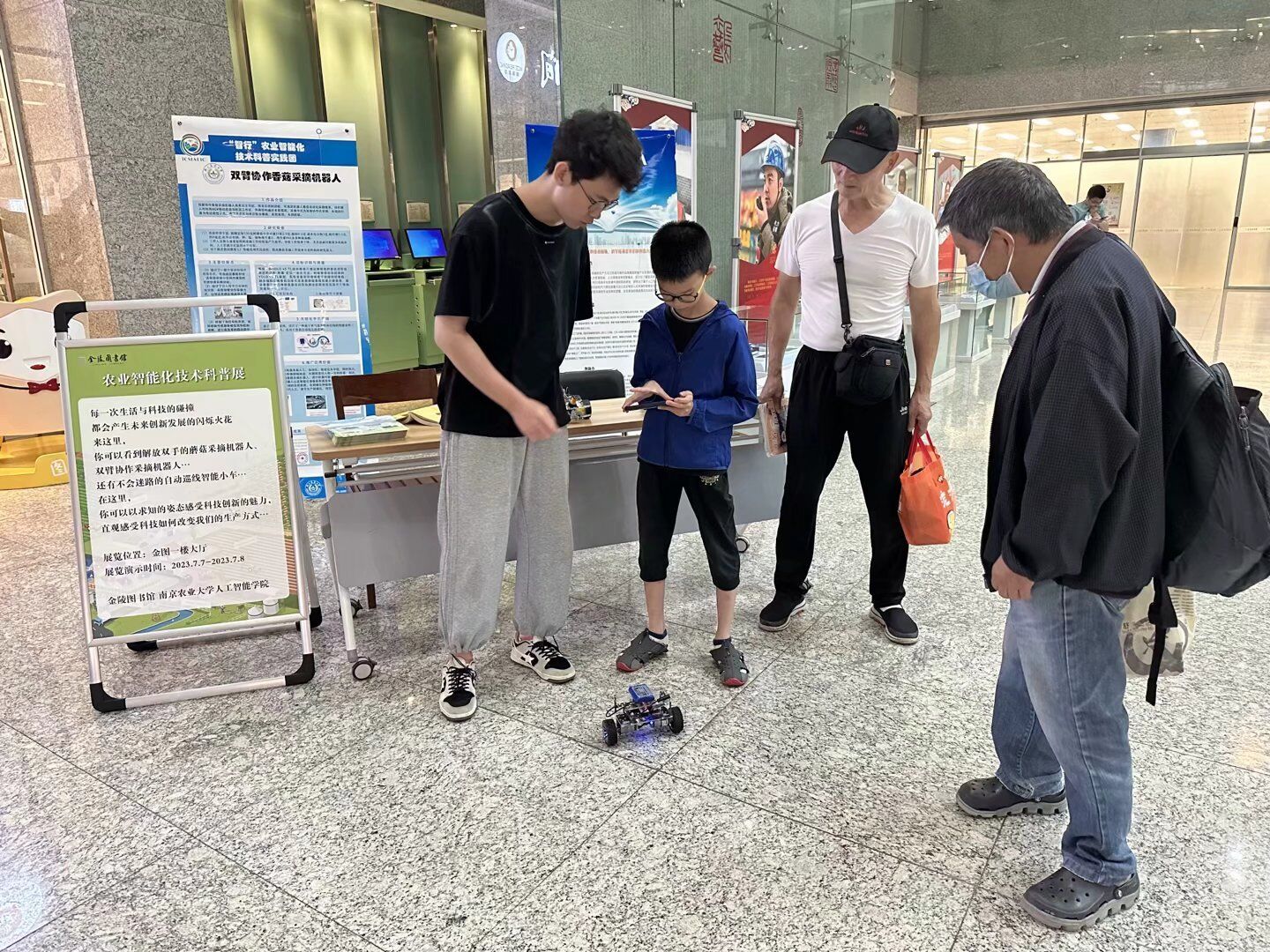 “智行”农业智能化技术科普实践团走进金陵图书馆举办智能农业科普展,展览设置在图书馆一楼大厅面向公众开放,金陵图书馆分馆建设部主任孙振强、成人电影