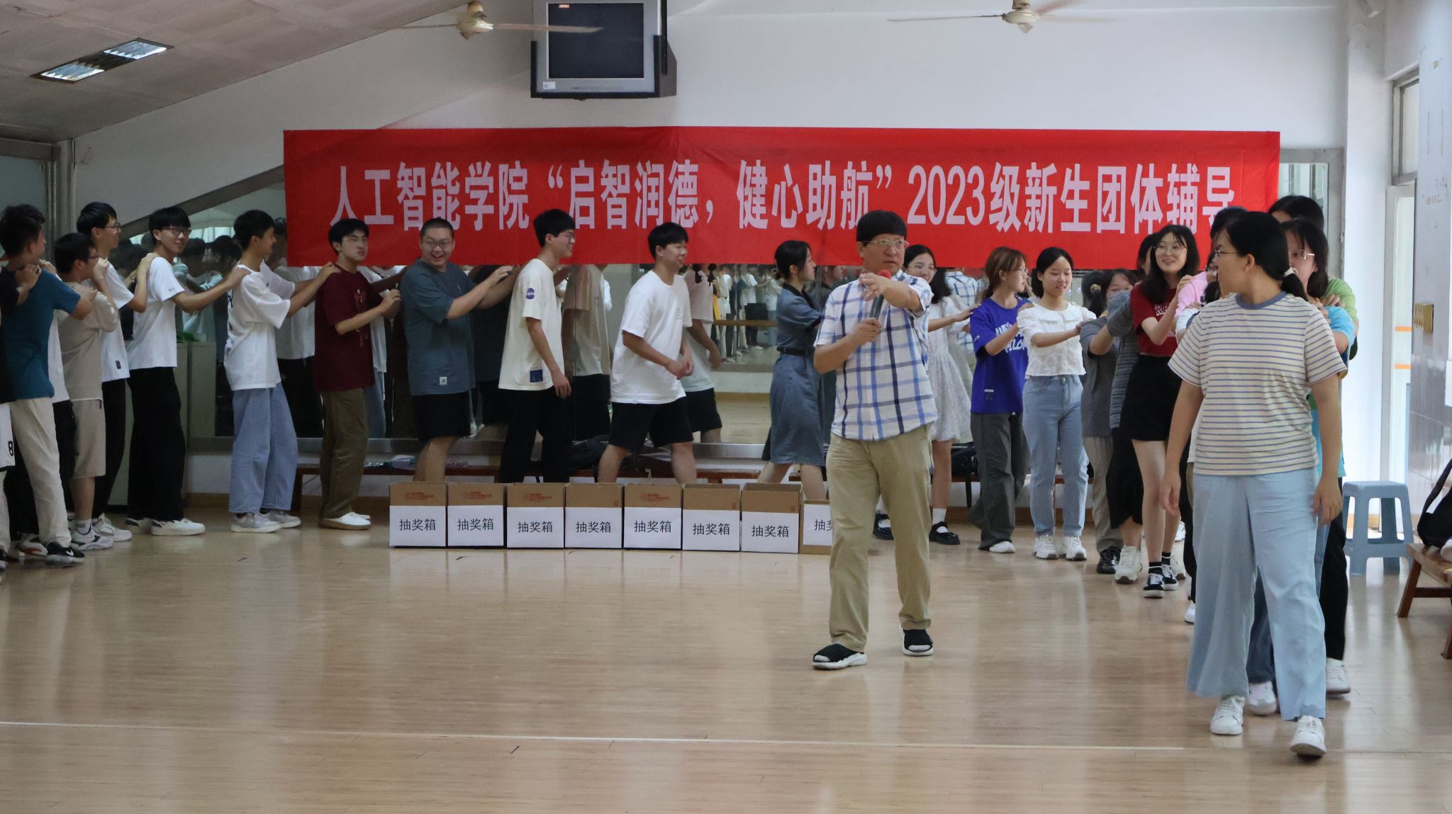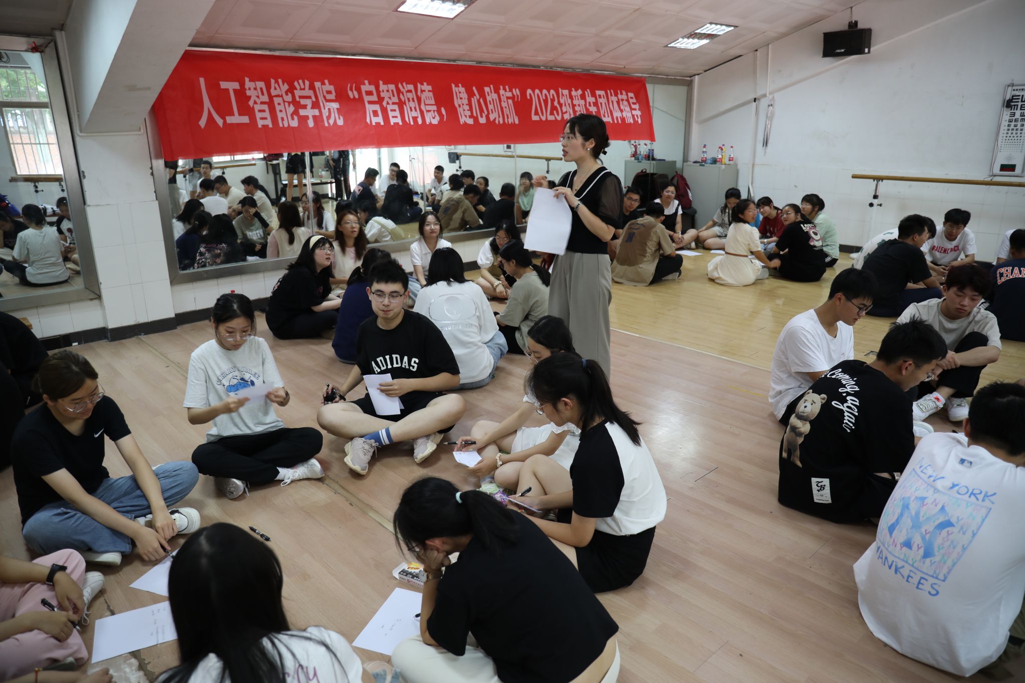 随后,我校大学生心理健康教育中心全体老师带领2023级全体新生分组开展全覆盖式心理团体辅导活动。王世伟、康中和、林静、徐文、许梓薇、顾浩钰、张永婧七位老师围绕破冰、适应、融入、成长等主题展开团辅,旨在帮助新生快速融入学校生活,增强人与人之间的感情,加强集体凝聚力、合作力和包容力。素质拓展设置了“喊数抱团”“不倒森林”等趣味游戏和倾听、分享环节,同学们在轻松的氛围中畅谈大学生活初感受和成长故事,引发了共鸣和思索。