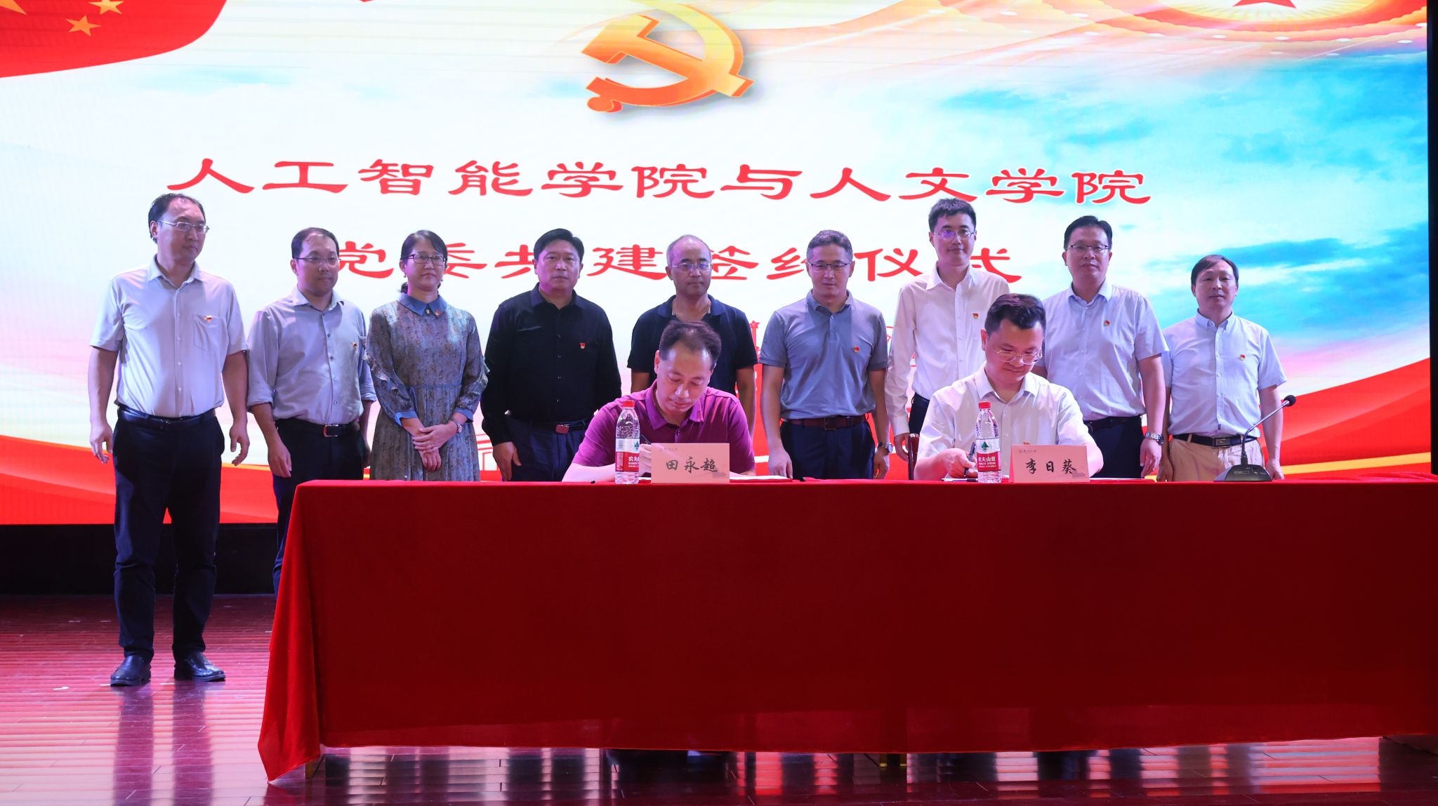 人工智能成人电影党委书记田永超与人文与社会发展成人电影党委书记李日葵上台签订《党委共建合作协议书》,两院领导共同上台见证并合影留念。签约仪式后,成人电影