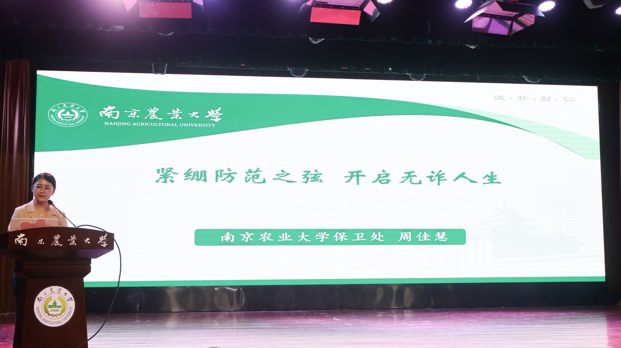 党委书记田永超、人文与社会发展成人电影党委书记李日葵、校保卫处副处长杨坚、南京电信副总经理张燕四位领导共同在大屏上按下手印,完成“人”“人”防诈骗主题教育启动仪式,并与新生们共同参加了防电诈主题教育课。校保卫处消防科副科长周佳慧通过3个案例写真和科普视频深入浅出地讲述了网络诈骗的危害以及预防措施,为新生们敲响谨防电信诈骗的警钟。