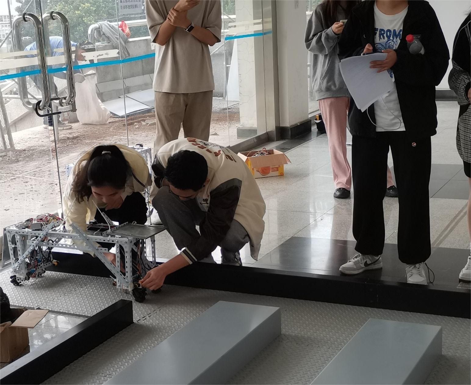 B类赛事现场同样精彩,各参赛小组需利用自制机器人小车按照规则完成垄道遍历,现场评委会根据完成时间和失误率进行综合评判,最后评选出一等奖1队,二等奖2队,三等奖5队,推荐晋级。