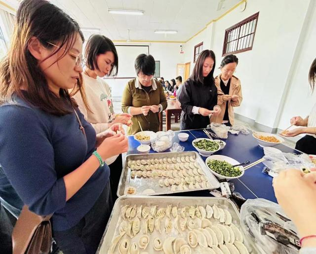 中午,在伊利集团冷饮事业部的大力支持下,成人电影工会组织了包饺子暨掼蛋活动,为老师们提前准备好了馅料、饺子皮以及工具,女老师们忙着纷纷展示手艺,男老师们则聚在一起聊天掼蛋,整个活动过程氛围活跃,场面温馨,其乐融融。