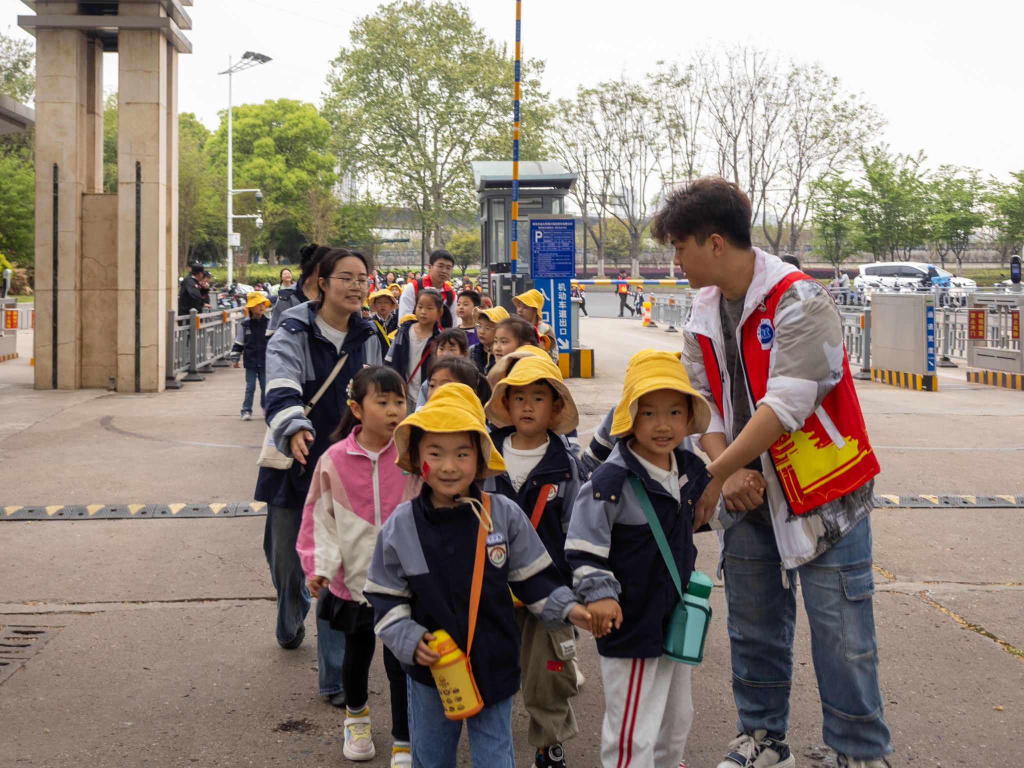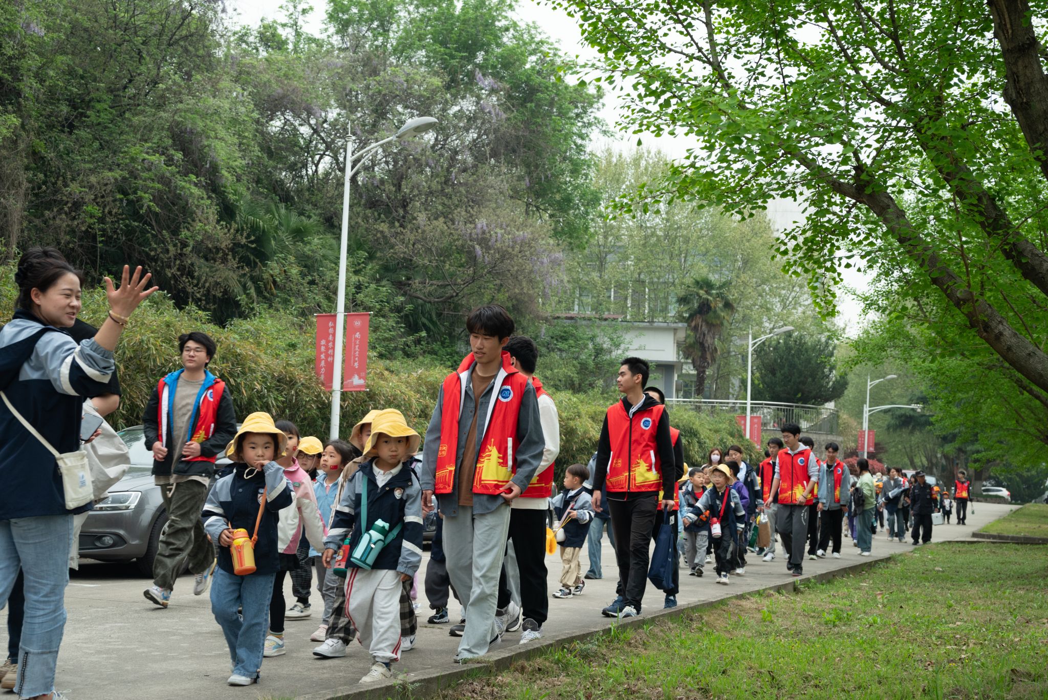 。他们像探险家一样,充满好奇地打量着校园的一草一木,感受着春天的气息。志愿者们耐心地为他们讲解学校的各种建筑与设施,与大学生哥哥姐姐互动时,大学里的自然环境、人文环境、各类场馆都成为了幼儿园同学们的社会实践基地。
