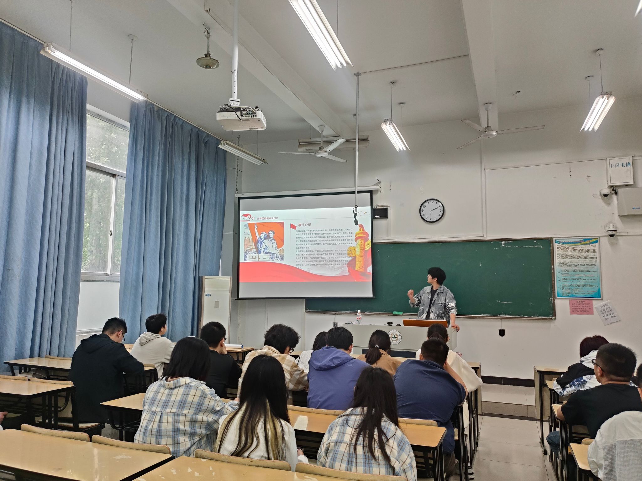 活动第一部分,计科231团支部在汇贤楼举办了“厚积流光,赓续奋斗”主题五四精神讲堂,详细介绍了五四青年节的设立缘由及历史背景。