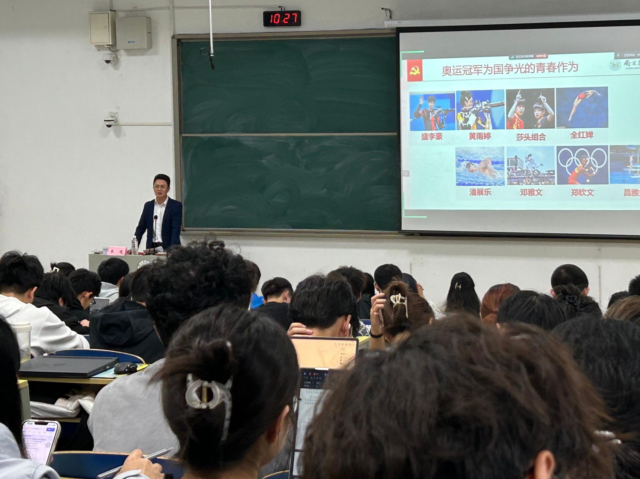 朱珠以“红色向党的青春”为主题,以电影《志愿军》、《长津湖》和雨花英烈为引,带领学员们重温红色故事,感悟红色精神。同时结合奥运健儿们的生动事例讲述了新时代青年的优秀事迹。他用深入浅出的方式和鲜活的案例引导学员们端正入党动机,以青春之心向党,不负韶华,不负时代,不负人民。