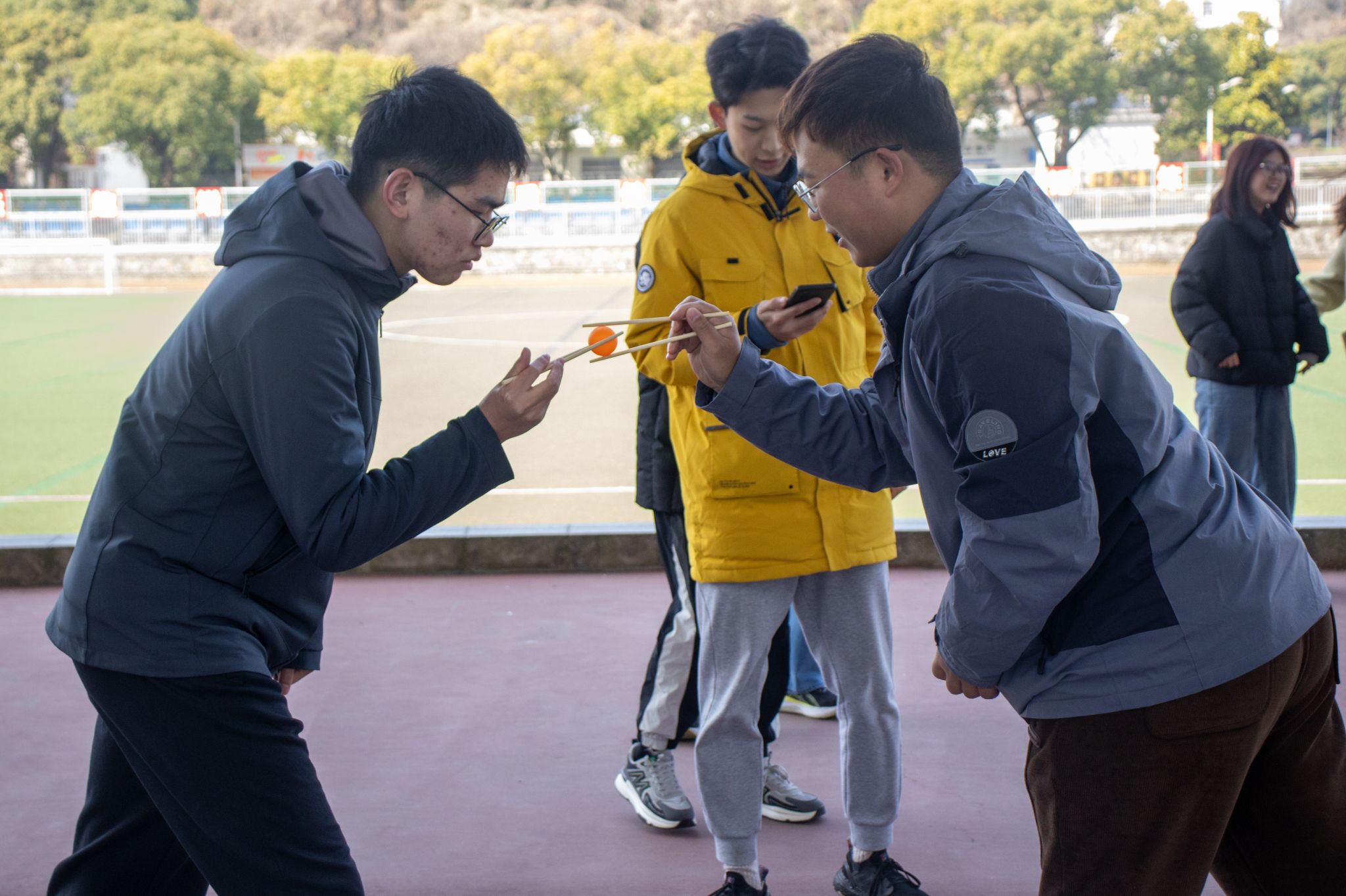 在“五育融合”创新理念引领下,运动会精心设置四大特色项目:“勠力同心 和衷共济”篮球接力赛、“集聚众智 汇聚全力”呼啦圈传递赛、“乒博奋斗 锲而不舍”筷子夹球竞速赛、“勇毅笃行 长风万里”团队接力赛。各项目突破传统体育竞赛模式,有机融入团队协作、精细操作、策略规划等育人元素。