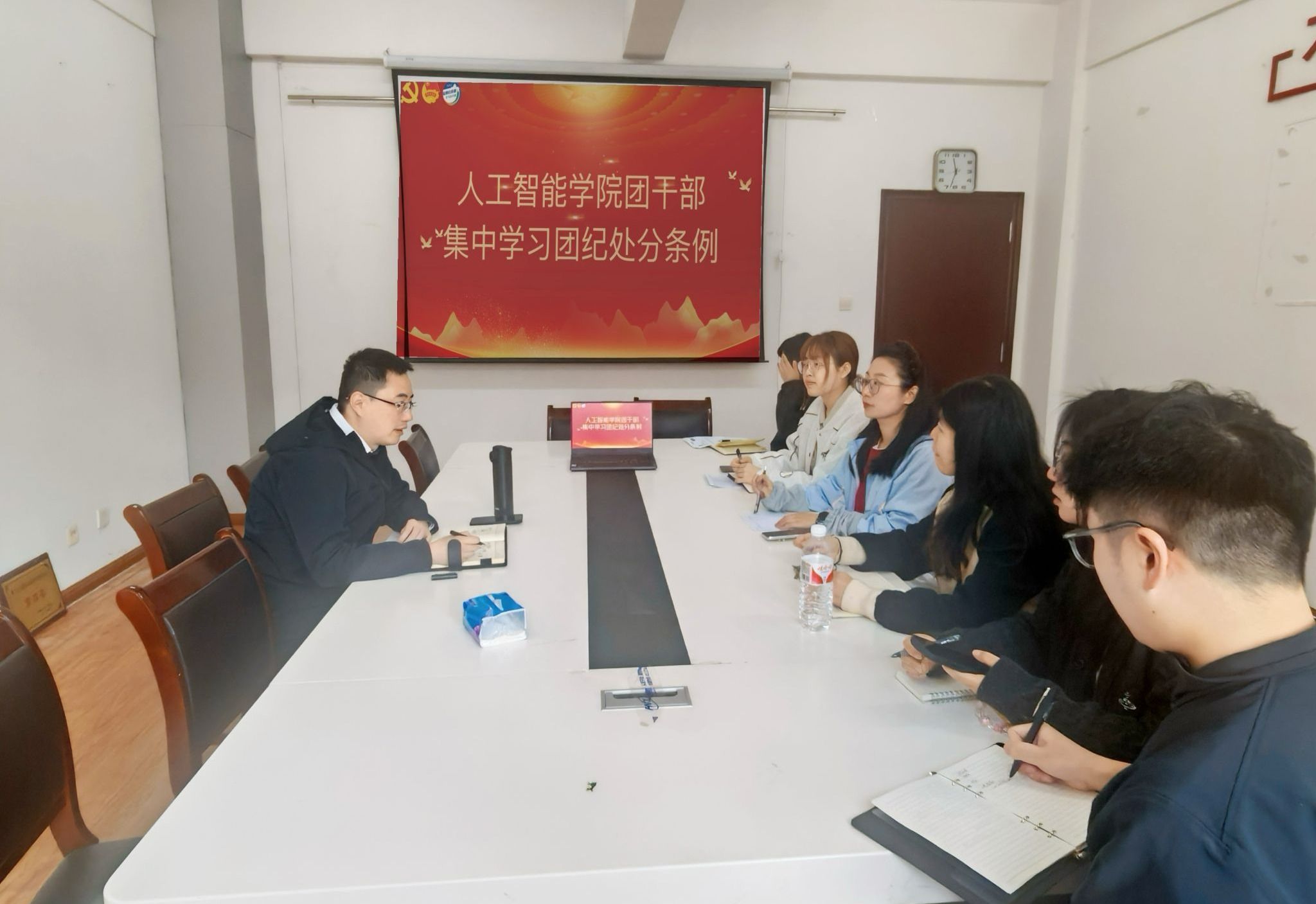 团委在浦口校区育贤楼B311召开团纪处分条例集中学习会。会议由院党委副书记吕一雷主持,全体团干部参加学习。