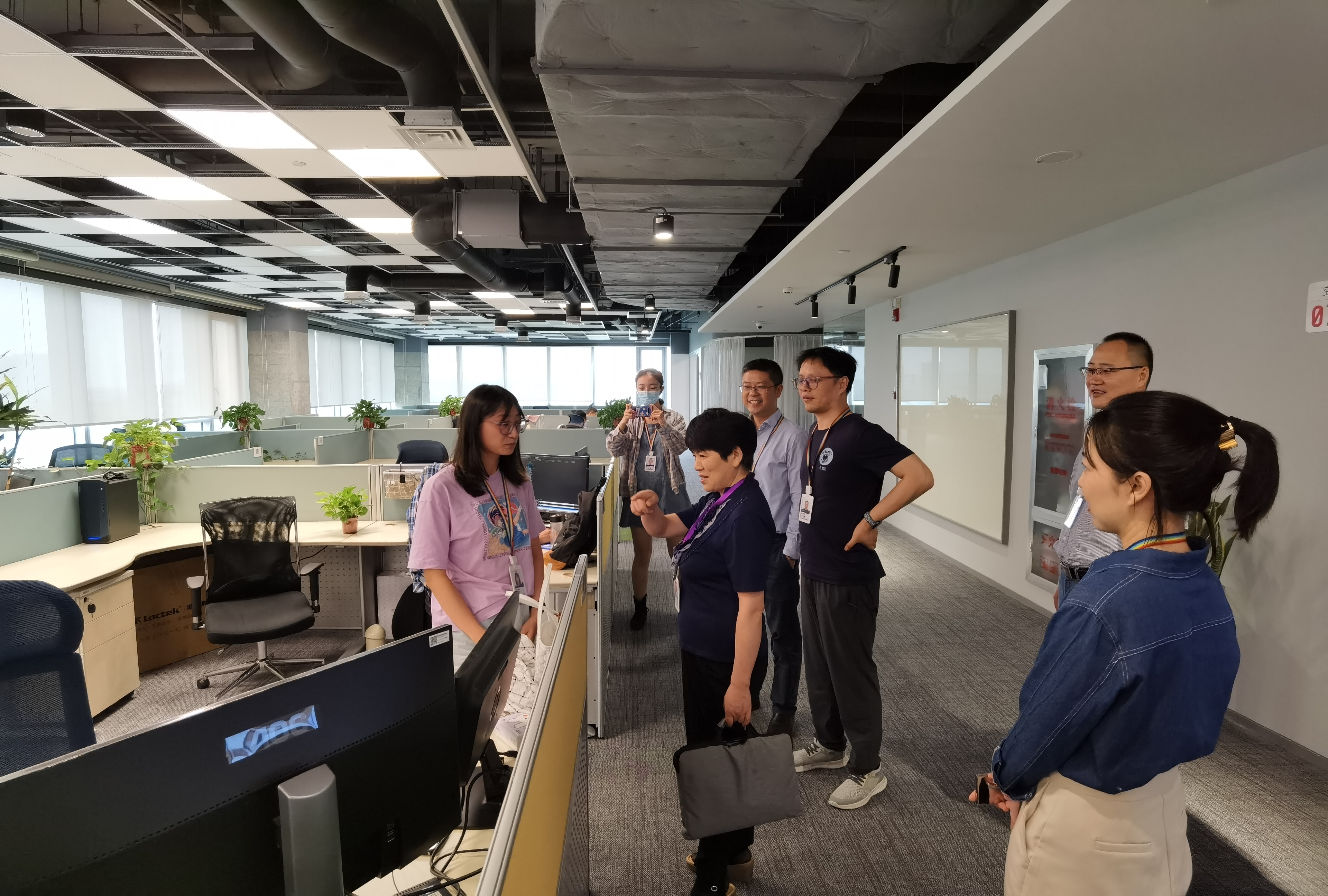 会后,公司领导陪同成人电影师生一行参观了解了公司大楼的办公环境、研发部门、数据中心,以及极具人文关怀的配套健身、休闲、活动区域与设施。参观过程中,师生一行着重与成人电影