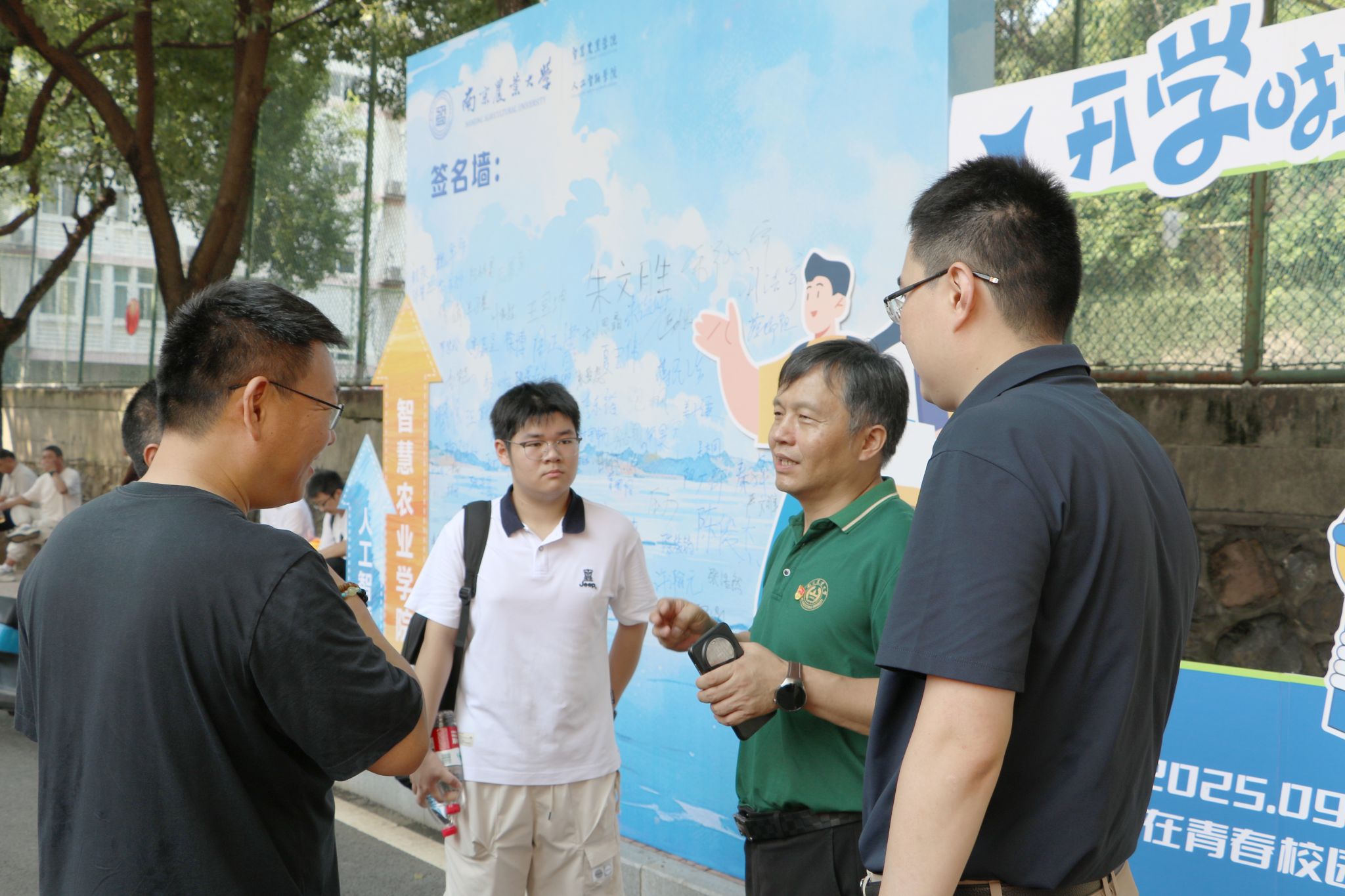 领导班子成员亲临迎新一线,与师生志愿者亲切交流,细致询问报到流程进展。在与新生及家长的交谈中,院党委书记李骅勉励新生:“智慧农业是科技兴农的前沿阵地,希望你们以‘诚朴勤仁’的校训精神为指引,在交叉学科领域勇闯创新之路。”常务副院长田永超则结合学科发展前景,向新生介绍了成人电影专业的特色优势,鼓励大家立大志、明大德、成大才、担大任。