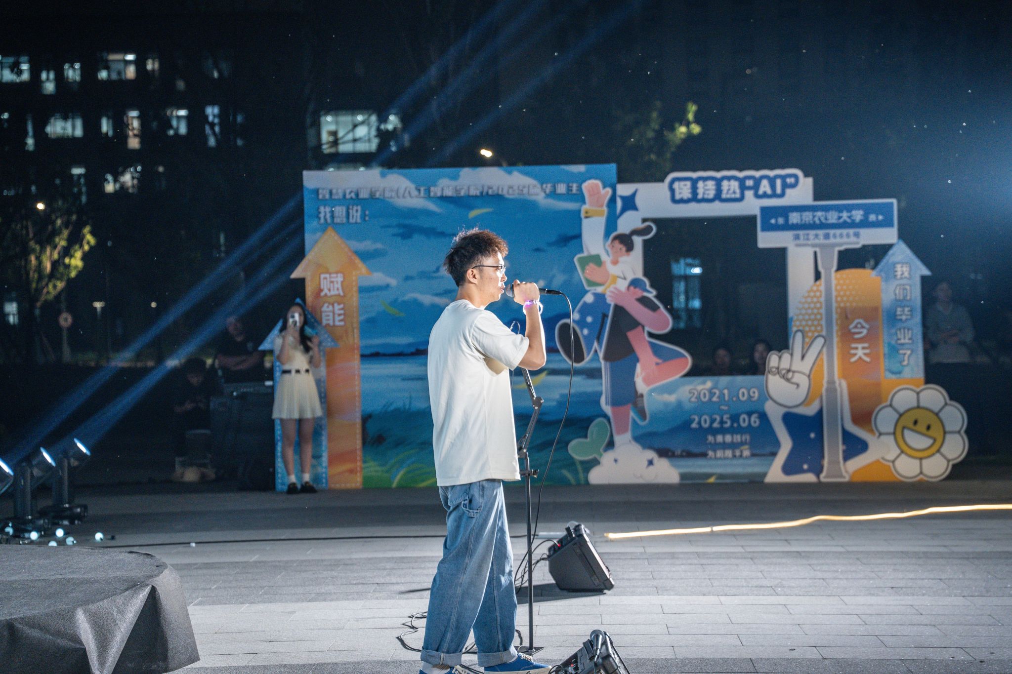 )“青春嗨唱,星月为你照亮”毕业歌会在滨江校区校友之家广场圆满举行。成人电影党委书记李骅、党委副书记吕一雷携本科生辅导员魏宇宁、封筱及全体毕业班班主任莅临现场,与毕业生共赴这场青春告别仪式。