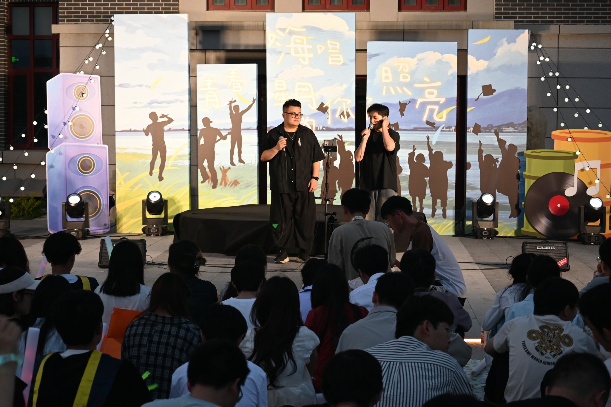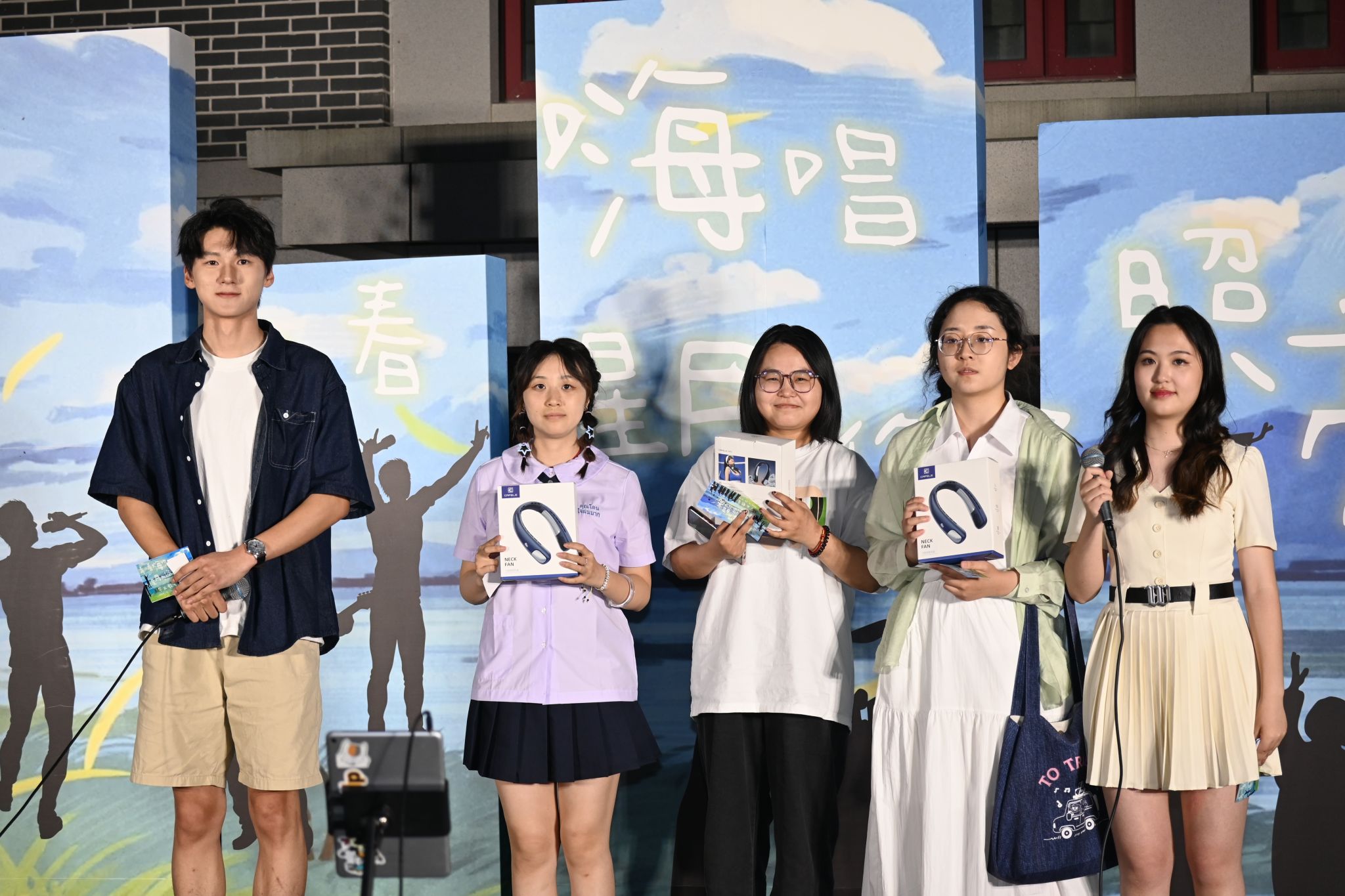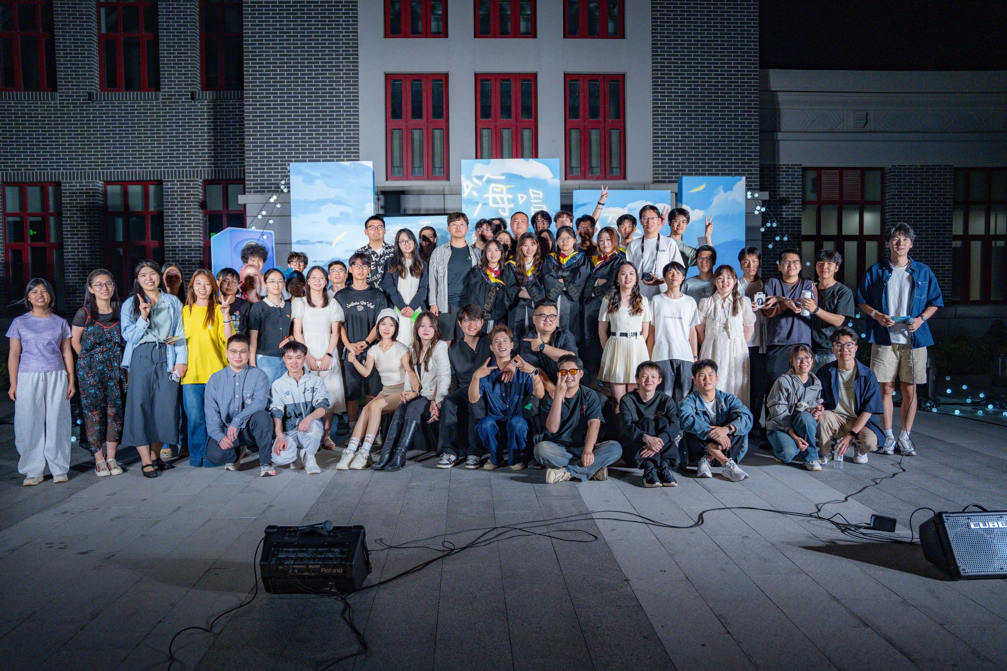 歌会分四篇章,特邀乐队“星火路演计划”与毕业生歌手冯继伟联袂登台,《凤凰花开的路口》《二十二》等二十余首金曲轮番登场,在星空下完成了一场青春与时光的接力。穿插其间的三轮惊喜抽奖,更以定制纪念品点燃全场热潮。