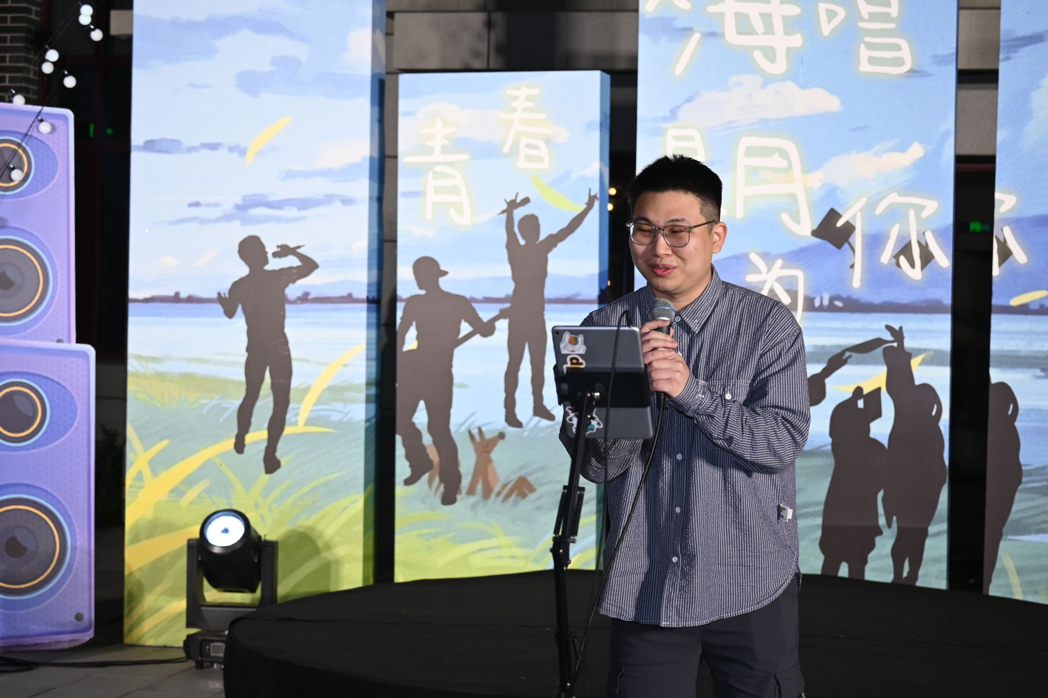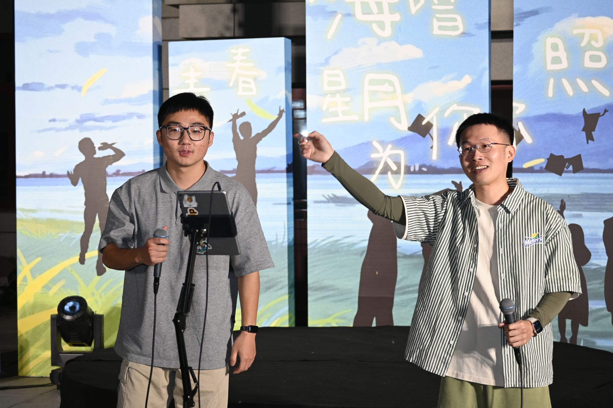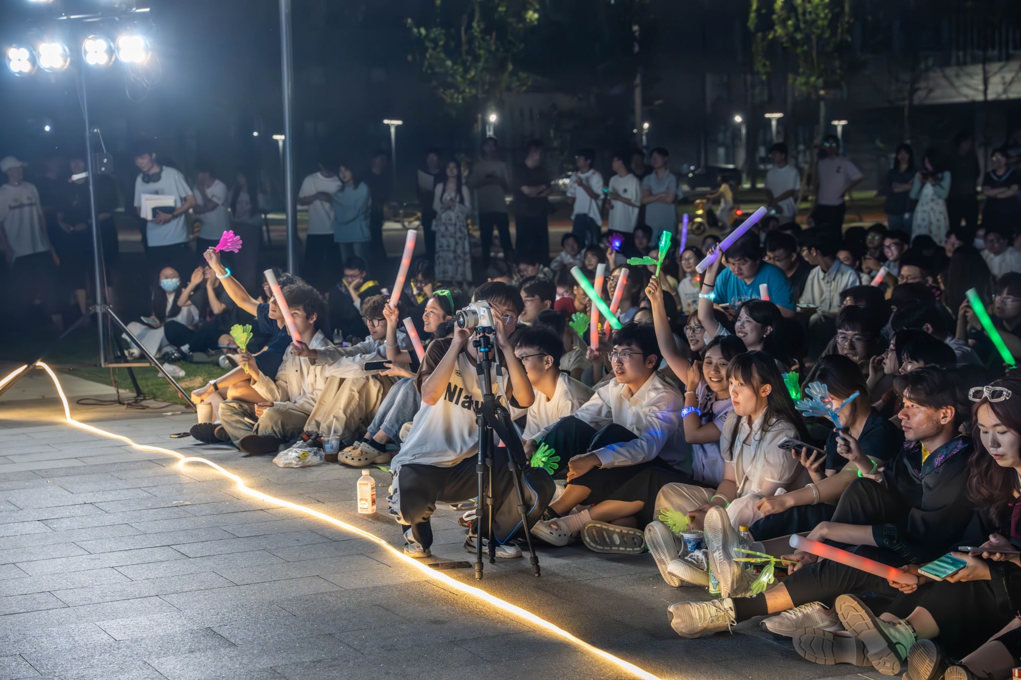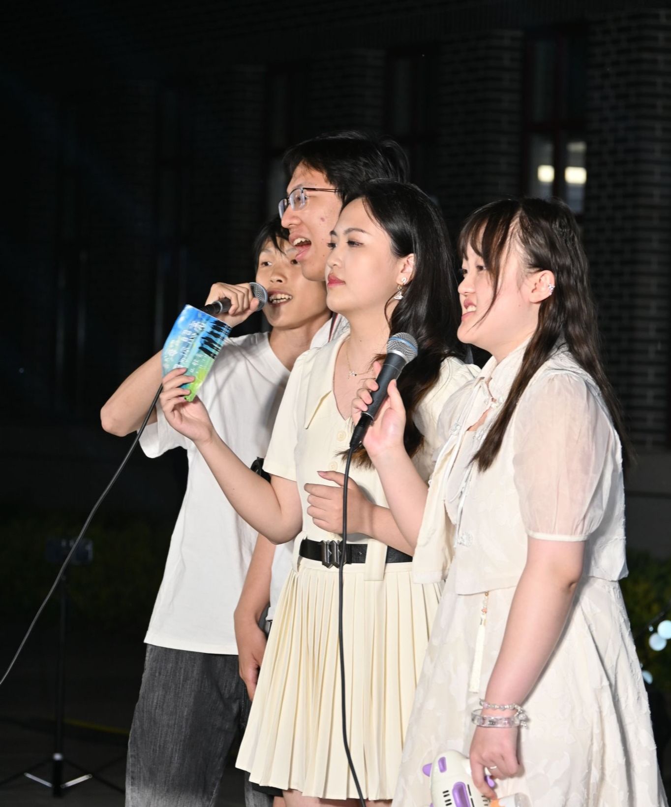 歌会分四篇章,特邀乐队“星火路演计划”与毕业生歌手冯继伟联袂登台,《凤凰花开的路口》《二十二》等二十余首金曲轮番登场,在星空下完成了一场青春与时光的接力。穿插其间的三轮惊喜抽奖,更以定制纪念品点燃全场热潮。