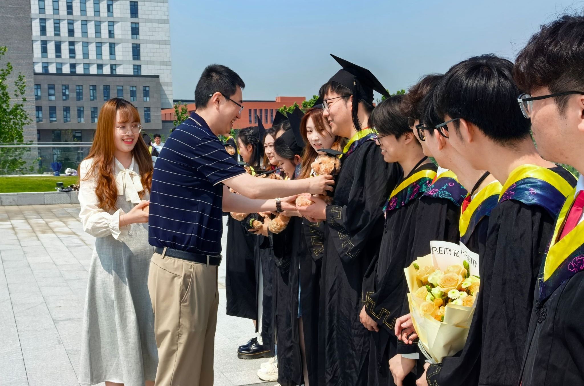 )为全体毕业生举行毕业礼物赠予仪式。成人电影特别定制毕业纪念小熊,由成人电影领导及毕业班主任们亲自交到毕业生手中。党委副书记吕一雷在赠礼时寄语:“‘熊’与‘雄’同音,这只毕业小熊寄托成人电影对毕业生们自强不息、奋发向上的期许。预祝各位毕业生前程似锦,长风破浪!”