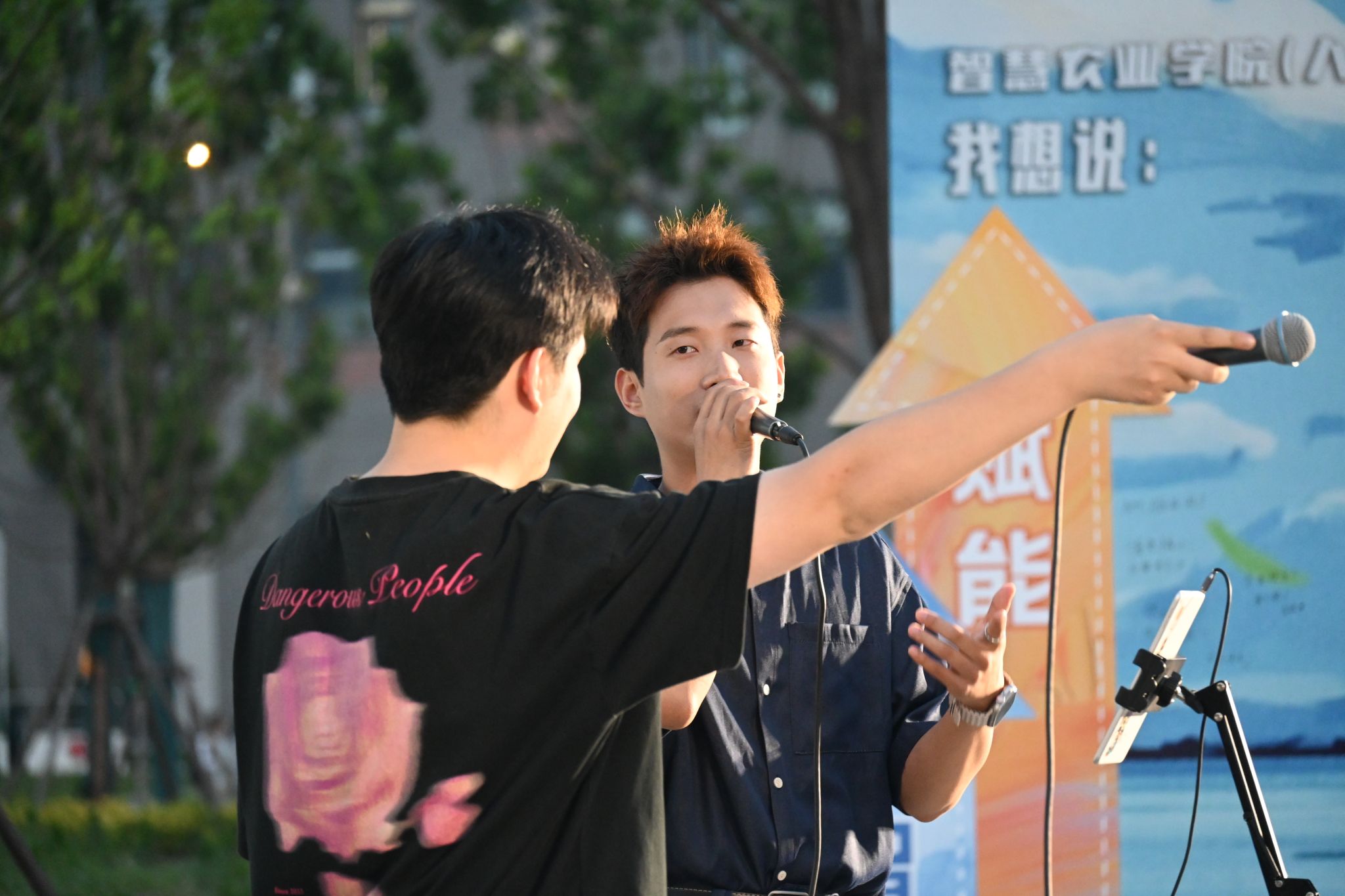 愉快热烈的氛围还吸引来了在操场散步的农成人电影研究生毕业生陈兆宇与食品成人电影博士一年级学生吴国俊,他们用歌声表达对毕业生的无尽祝福与不舍。