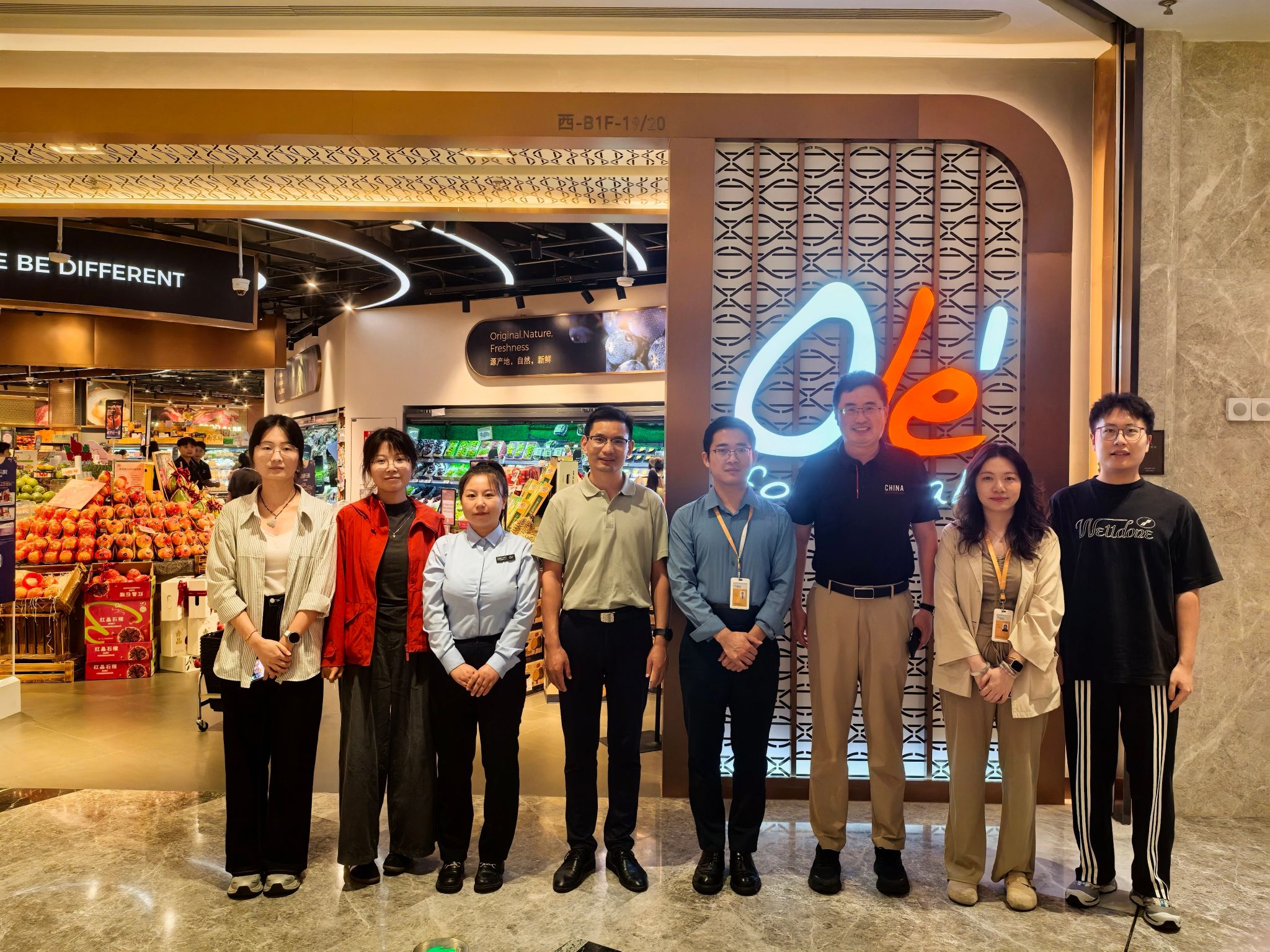 在负责人嵇青陪同下,成人电影一行参观了华润万家Ole’精品超市经营环境与工作场所,深入了解了公司运营管理模式、业务流程及市场发展情况。交流中,嵇青详细介绍了华润万家的发展历程、业务板块、人才需求以及薪资待遇等情况。校企双方围绕学生实习和就业、专业需求及人才培养等方面开展了深入交流。