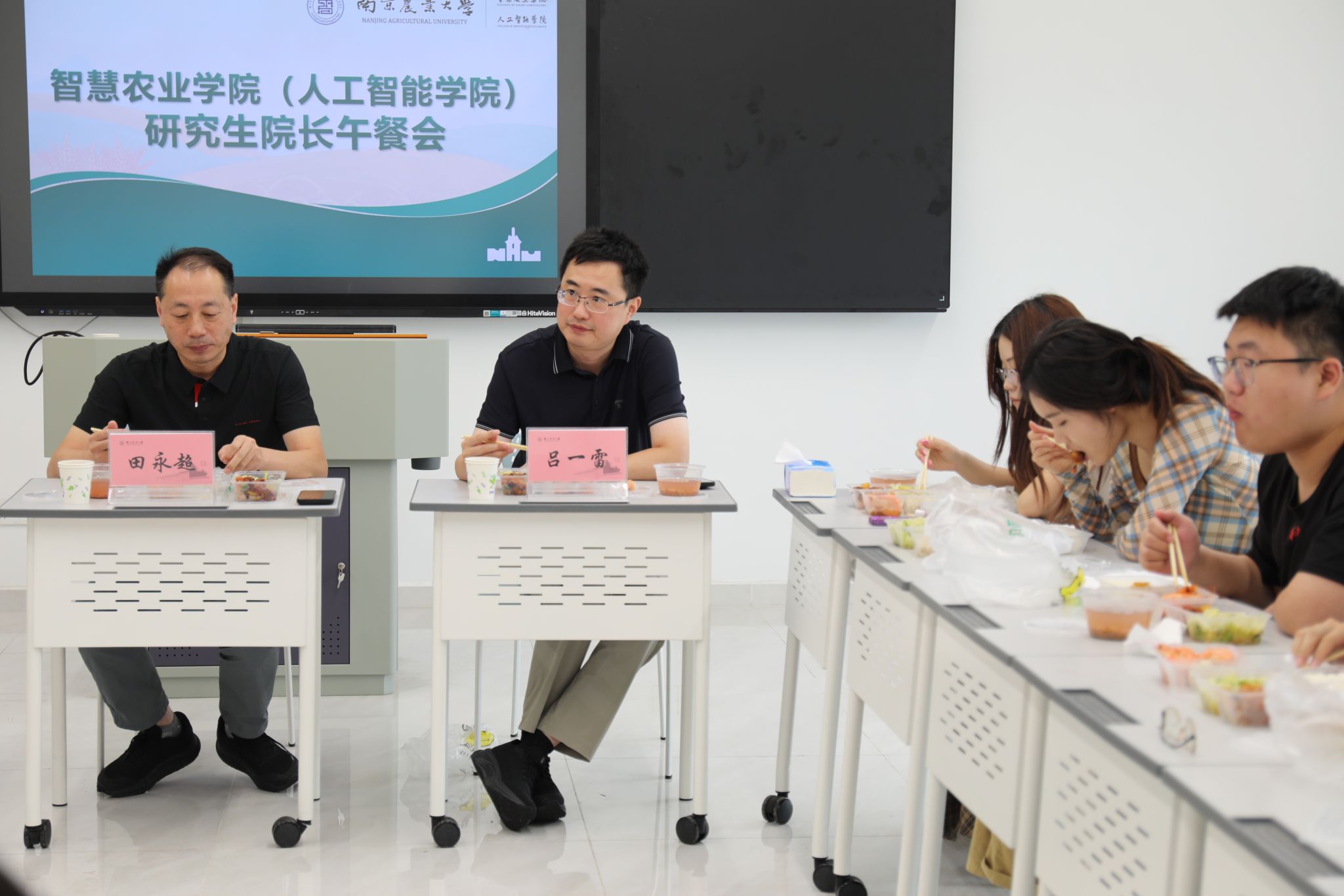 )在滨江12号楼A769成功举办第二届研究生“院长午餐会”。成人电影常务副院长田永超、党委副书记吕一雷、辅导员艾娜与来自各专业的2025级硕博新生代表共进午餐,围绕学业发展、科研创新与校园生活等话题展开深入交流。
