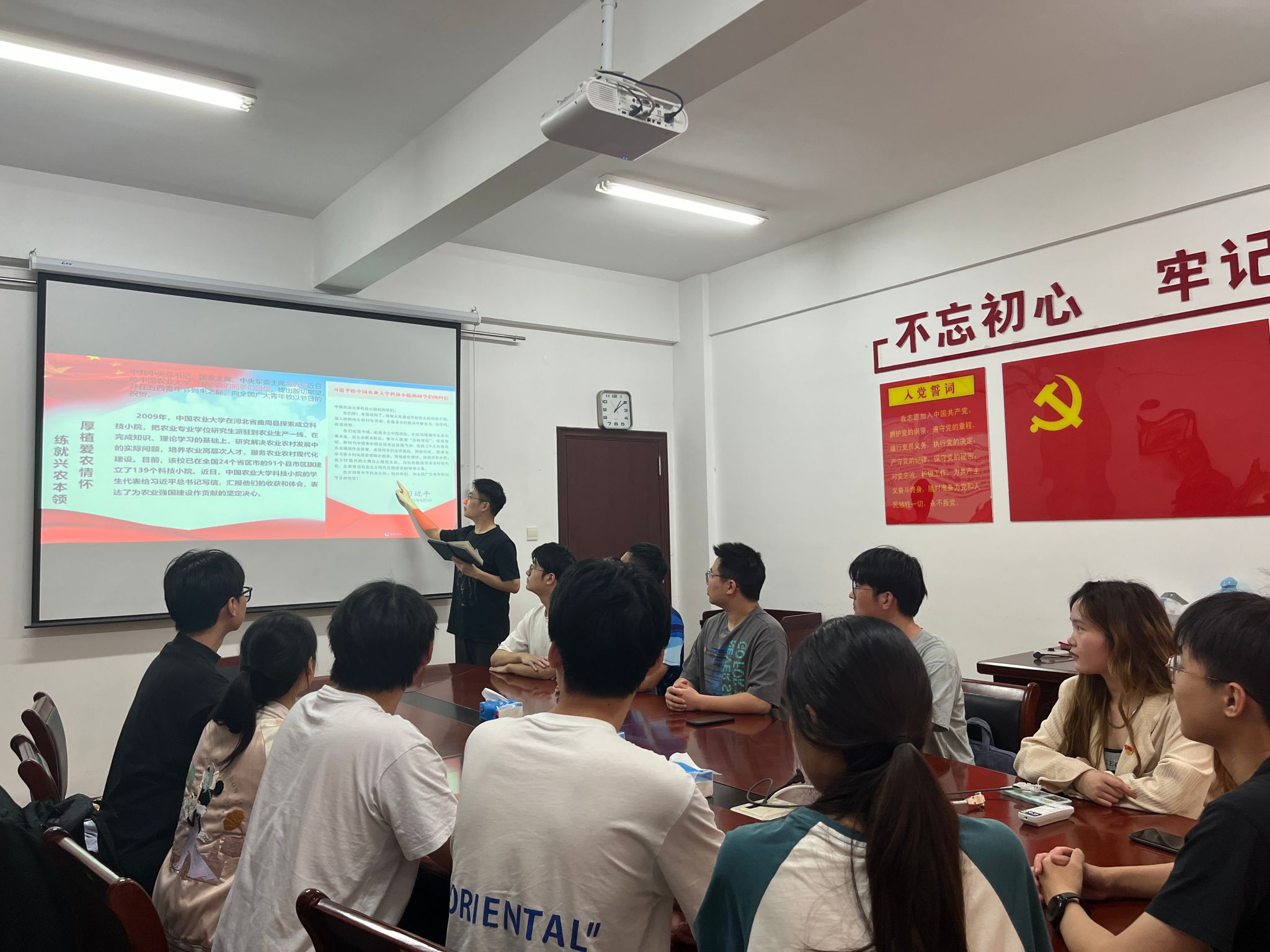 李洪勉励支部党员要将习近平总书记的殷殷嘱托化作干事创业的强大动力,主动服务建设农业强国、实施乡村振兴等国家战略,把青春挥洒在田野间,把论文写在大地上,以实际行动助力我国农业科技水平提升,发挥专业特长,依托当地产业和自然禀赋,为农民提供全方位科技服务,加快推进农业农村现代化,让乡村振兴的沃野涌动新时代的澎湃活力。